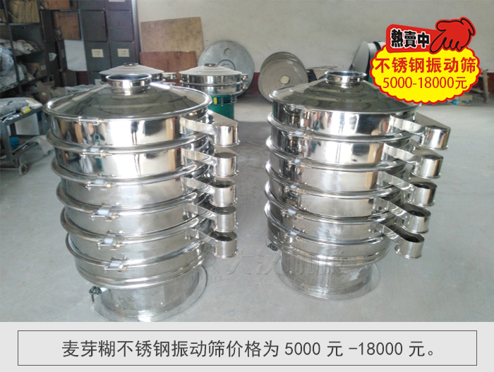 大漢機械所生產(chǎn)的麥芽糊不銹鋼振動篩價格為5000元-18000元。