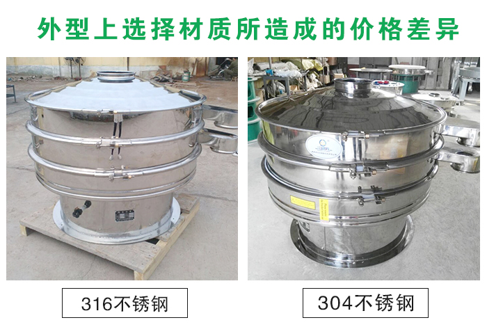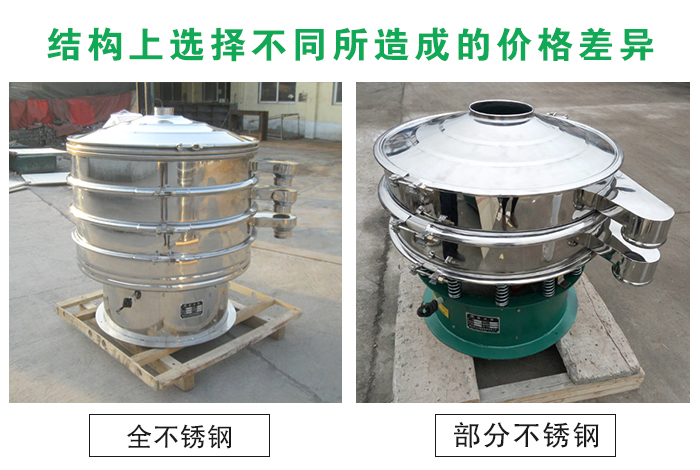 不銹鋼振動篩在整體結(jié)構(gòu)上分為整機均采用不銹鋼制成和與物料接觸部分為不銹鋼材質(zhì)底座為碳鋼材質(zhì)兩種,兩者差價在2000元以上,全不銹鋼材質(zhì)整體美觀,適合有高需求的客戶使用,與物料接觸部分為不銹鋼材質(zhì)可以在保證物料干凈衛(wèi)生的基礎(chǔ)上為客戶節(jié)省成本。