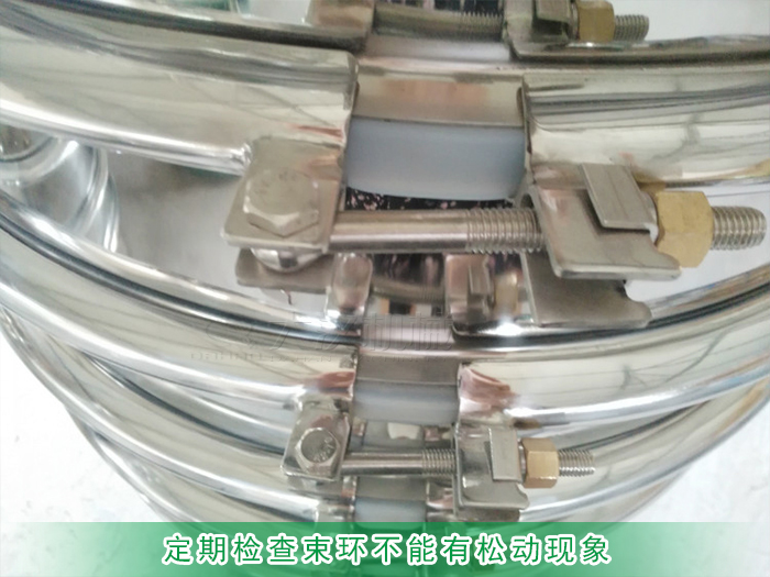 不銹鋼振動(dòng)篩在換網(wǎng)、清洗、保養(yǎng)等過程中可能會造成篩框之間的束環(huán)松動(dòng),導(dǎo)致篩分過程中篩體晃動(dòng)劇烈,從而造成出料口振動(dòng)斷裂。需要定期檢查束環(huán)不能有松動(dòng)現(xiàn)象。