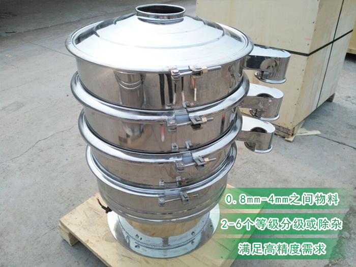 不銹鋼振動篩可篩分0.8mm-4mm之間規(guī)格的杏仁,可安裝1-5層篩網,同時能進行2~6個等級的分級或除雜,一次性可以篩分出六種不同規(guī)格的杏仁,單層可以簡單的分級除雜,多層則可以完成多種分級除雜等篩分效果。