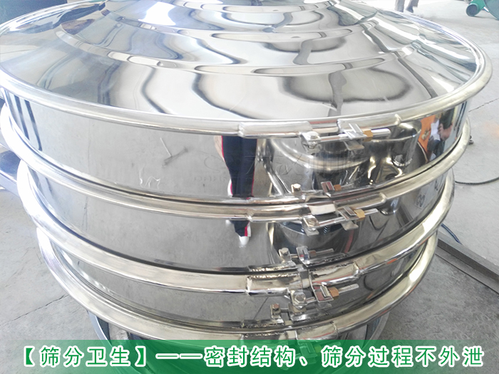 不銹鋼振動篩整機采用密閉式結構,可以避免物料在篩分過程中溢散,防止浪費物料的同時還對現場環(huán)境造成污染,上部分進料口處加裝有防塵蓋、篩框與篩網之間有密封膠圈、軟連接等進行隔離和密封,防止灰塵進入混入物料中不會受到污染,所采用的密封件均為硅膠材質符合食品行業(yè)的篩分要求。