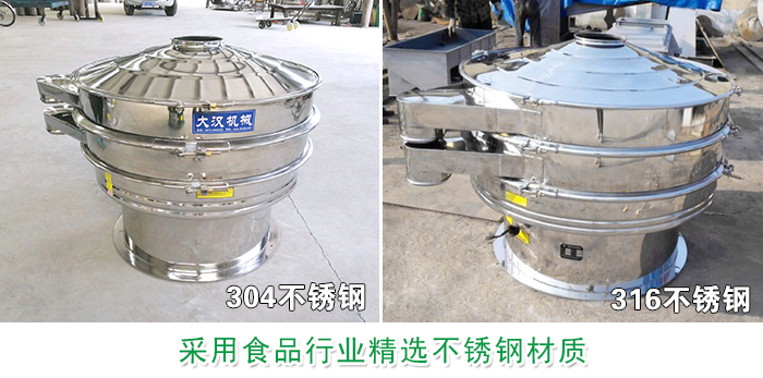 不銹鋼振動(dòng)篩采用優(yōu)質(zhì)304、316不銹鋼材質(zhì),可有效針對(duì)屬于食品行業(yè)類的玉米粉,確保篩分過程中的衛(wèi)生型與無污染性, 整個(gè)篩機(jī)結(jié)構(gòu)分為兩種,一種是整機(jī)均采用不銹鋼制成,另一種是與物料接觸不分為不銹鋼材質(zhì),底座為碳鋼材質(zhì),經(jīng)過內(nèi)外拋光后的不銹鋼表面光滑無毛刺現(xiàn)象,完全符合國(guó)家對(duì)于食品行業(yè)的制定標(biāo)準(zhǔn)。