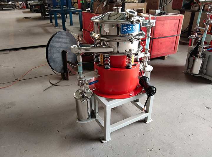 氣體保護不銹鋼振動篩是直徑600mm型號,一層兩個出料口,再原有圓形振動篩的基礎(chǔ)上加裝氣體保護裝置,與物料接觸部分是304材質(zhì),采用立式振動電機作為激振源,電機上、下兩端安裝有偏心重錘,將電機的旋轉(zhuǎn)運動轉(zhuǎn)變?yōu)樗?、垂直、傾斜的三次元運動,再把這個運動傳遞給篩面。