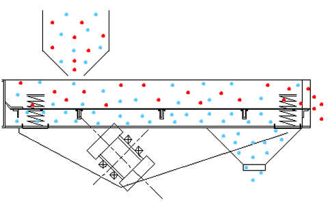 物料從給料機(jī)均勻地進(jìn)入篩分機(jī)的進(jìn)料口,在振動(dòng)電機(jī)的激振下,向出料口方向邊跳動(dòng)邊篩分,通過多層篩網(wǎng)篩分出數(shù)種產(chǎn)品和不合格的篩上、篩下物,分別從各自的出口排出,流入料倉或盛料筒.