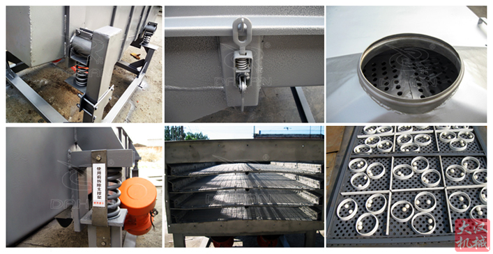 6、減振彈簧:阻止振動傳給地面,同時支持篩箱的全部重量,安裝時,彈簧必須垂直與地面。